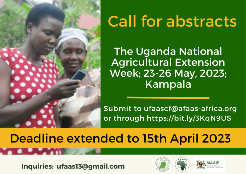 The Uganda National Agricultural Extension Week 2026 (UGNAEW2026) will be held from 20-24 April 2026 at Silver Springs Hotel, Bugolobi, Kampala, under the theme “Multi-actor agricultural extension and advisory services for resilient, digital and market-oriented food systems”. This event will be preceded by regional workshops and agricultural-related events. The event is organised by the Uganda Forum for Agricultural Advisory Services (UFAAS), in partnership with the African Forum for Agricultural Advisory Services (AFAAS), the Ministry of Agriculture, Animal Industry and Fisheries (MAAIF), and other partners.